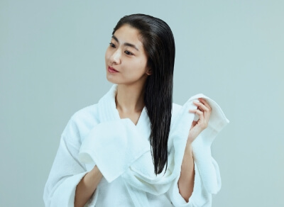 - 用毛巾擦乾後,取適量塗抹於頭髮上,再用吹風機吹乾。